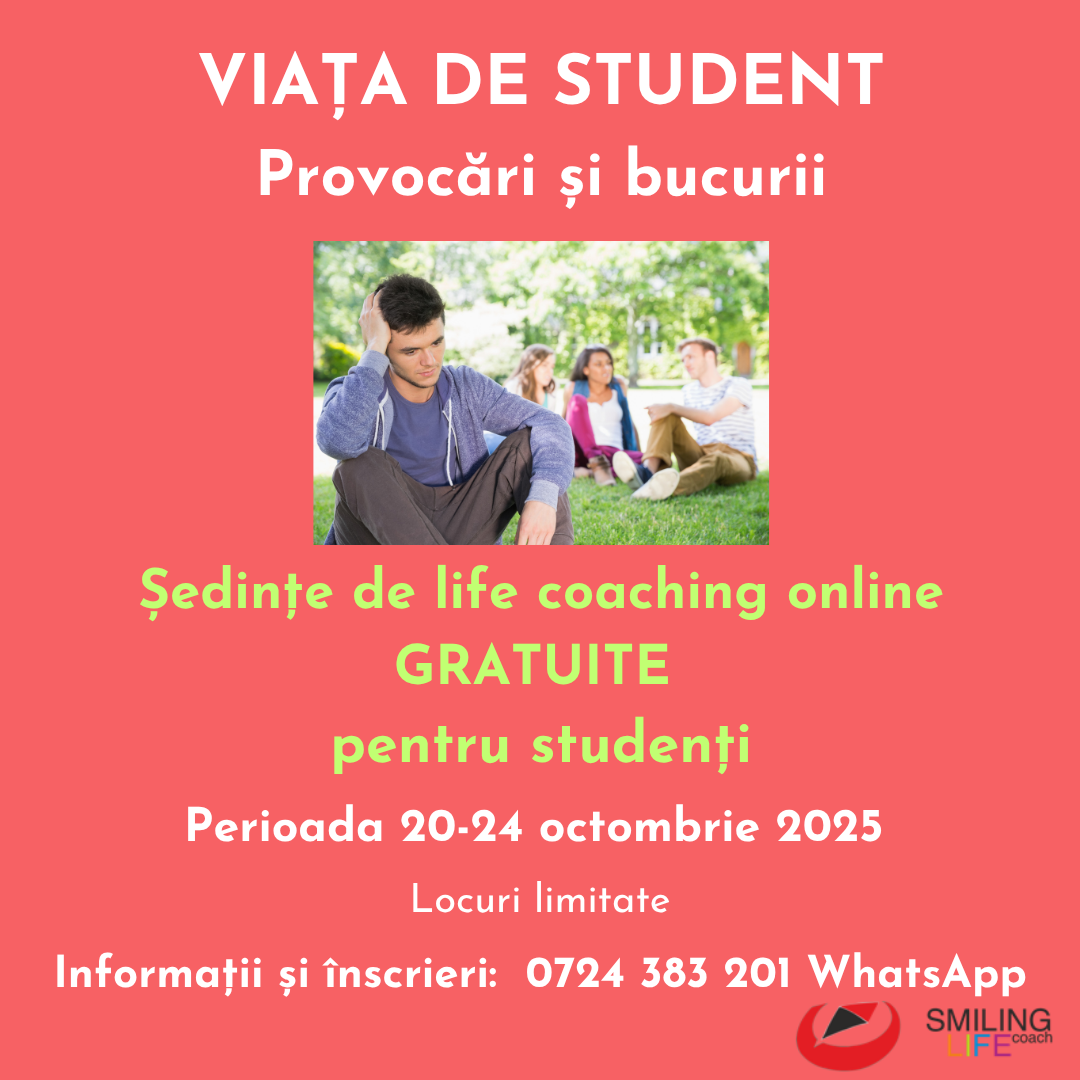 Articole de Life Coaching Ședințe de life coaching online GRATUITE pentru studenți Cursurile la facultăți au început de curând. Cum e viața de student? Surprinzătoare și frumoasă? Bulversantă și stresantă? Dacă ești boboc, aștepți până treci de prima sesiune ș... Citește mai mult Cum te pot ajuta eu, ca life coach “Simt că nu sunt o mamă bună: a început școala de curând și la ședința cu părinții am aflat că doar eu și câțiva părinți nu îi ducem pe copiii noștri la o grămadă de activități ... Citește mai mult Cum te pot ajuta eu, ca life coach Am ales să merg pe drumul acesta profesional mai mult pentru ai mei că așa e tradiția la noi în familie, să fim toți avocați. Acum însă simt, știu că drumul meu e altul. Și parc... Citește mai mult Sărbători binecuvântate, pline de zâmbete! Hristos a Înviat! Sărbători în tihnă, cu zâmbete, recunoștință și smerenie alături de oamenii dragi vouă! Citește mai mult Strategii anti-amânare -Spune NU PROCRASTINĂRII Ești de prea mult timp prieten cu "las' că fac mai târziu" și ai ratat astfel o grămadă de oportunități? Uite cum să te împrietenești cu "hai să încep acum, să nu mai amân"! Citește mai mult 1 2 3 4 5 6 … 14 »